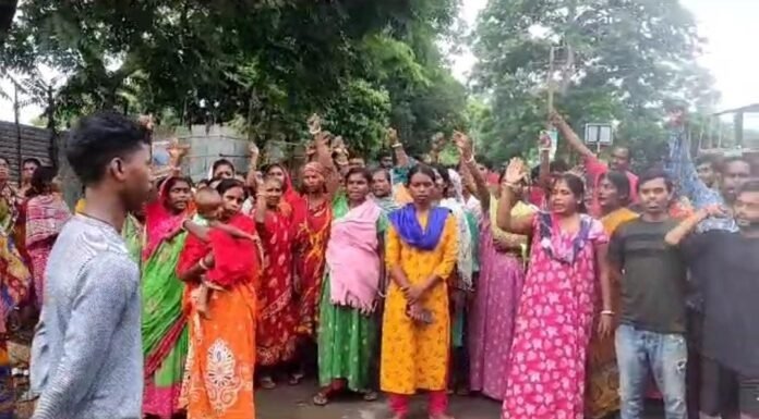 गिरफ्तार राजेन गोला की रिहाई की मांग को लेकर सिमना चाय बागान के श्रमिक मंगलवार देर रात से सिमना के सुंदर टीला पुलिस चौकी के सामने सड़क जाम कर रहे हैं।