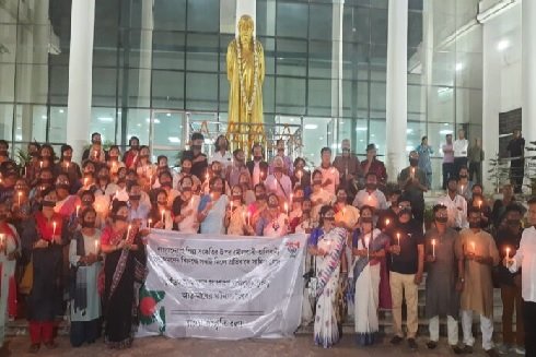 बांग्लादेश में सृजन शील साहित्य का अभ्यास करने वाले अधिकांश लोग अपने घरों के बिना भाग गए हैं। आज उनके खिलाफ मौन विरोध प्रदर्शन किया गया. उन्होंने सभी से बांग्लादेश की इस बर्बर घटना का विरोध करने का आग्रह किया।