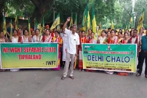 सरकार में सहयोगी आईपीएफटी ने अलग राज्य की मांग को लेकर दिल्ली के जंतर-मंतर पर धरना दिया