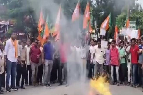 मंत्री विकास देबवर्मा पर बेबुनियाद आरोप लगाने के विरोध में विधायक सुदीप रॉय बर्मन का पुतला दहन किया गया