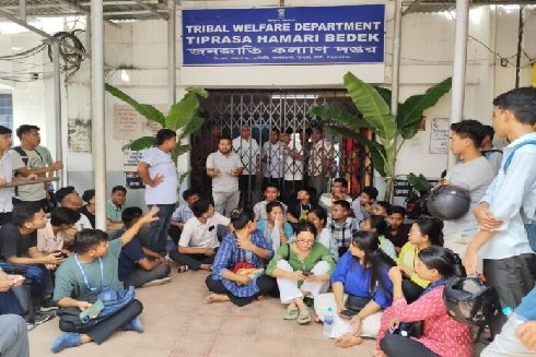 राज्य के जनजाति वर्ग के छात्र छात्रवृत्ति की मांग को लेकर आंदोलन में बैठे