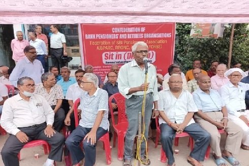 पांच सूत्री मांग को पूरा करने के उद्देश्य से बैंक के पेंशनधारी आंदोलन
