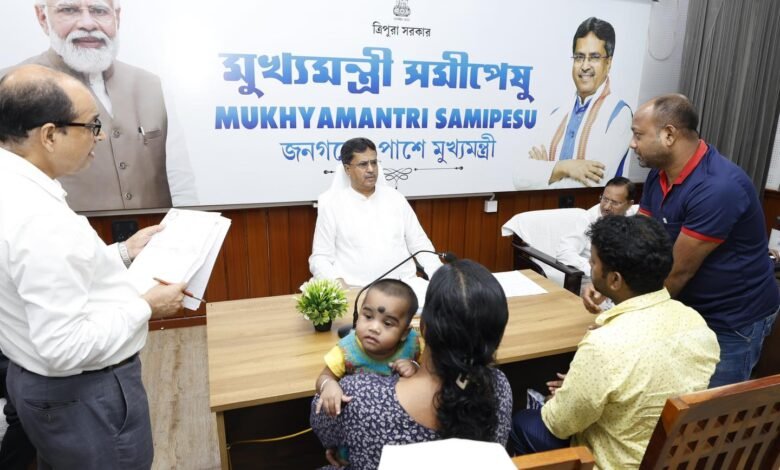 मुख्यमंत्री के समीपेशु कार्यक्रम के 44 वें एपिसोड में, मुख्यमंत्री प्रोफेसर (डॉ) माणिक साहा ने आज राज्य के विभिन्न हिस्सों से आए समस्याओं से पीड़ित लोगों से बात की। मुख्यमंत्री ने सभी की समस्याओं को हल करने के लिए ईमानदार पहल की। अगरतला चंद्रपुर की नेत्रहीन रिम्पी साहा (दास) अपनी 10 महीने की बेटी अस्मिता दास के लिए चिकित्सा सहायता की गुहार लेकर आई थीं।