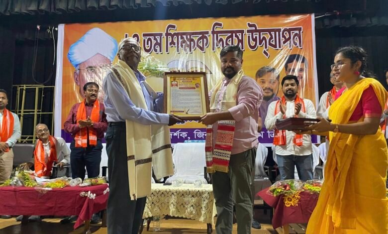 ऑनलाइन डेस्क, 6 सितंबर, 2025: शिक्षक लोगों को आकार देने में मुख्य शिल्पी होते हैं। वे उचित ज्ञान और चरित्र निर्माण के माध्यम से छात्रों का भविष्य निर्धारित करते हैं। पर्यटन मंत्री सुशांत चौधरी ने आज 64वें शिक्षक दिवस के उपलक्ष्य में जिरानिया अनुमंडल के मोहनपुर स्थित गुरुकुल सामुदायिक भवन में आयोजित एक कार्यक्रम में मुख्य अतिथि के रूप में अपने भाषण में यह बात कही। उन्होंने कहा कि शिक्षक न केवल छात्रों को पढ़ाते हैं, बल्कि उनके जीवन को आकार देने में भी महत्वपूर्ण भूमिका निभाते हैं।