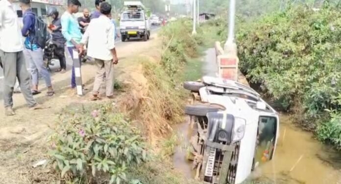 मध्य लक्ष्शिबिल सरकारटीला ने कहा कि लाकडाउन बाजार क्षेत्र में अधिक यात्री आना-जिससे वाहन नियंत्रण खो बैठा और सड़क किनारे खाई में जा गिरा। लॉकडाउन बाजार रोड। तेज आवाज सुनकर लाॅकडाउन बाजार से सटे इलाके के आसपास के लोग दौड़ पड़े।