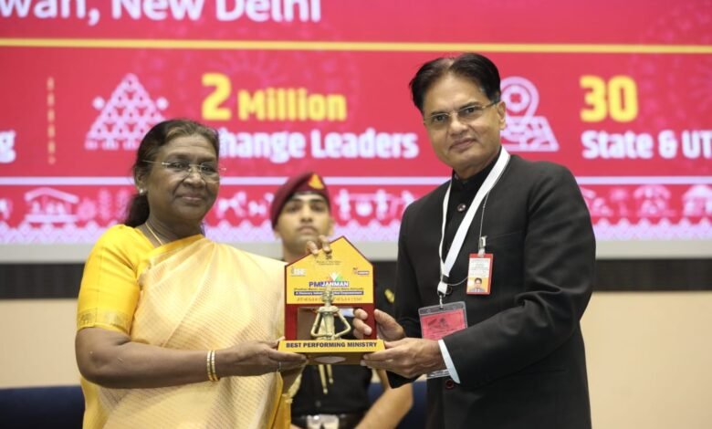 ऑनलाइन डेस्क, 19 अक्टूबर, 2025: प्रधानमंत्री जनजातीय आदिवासी न्याय महाअभियान (पीएमजनमन) के कार्यान्वयन में उत्कृष्ट योगदान के लिए महिला एवं बाल विकास मंत्रालय के सचिव श्री अनिल मलिक ने मंत्रालय की ओर से भारत के माननीय राष्ट्रपति से पुरस्कार प्राप्त किया।