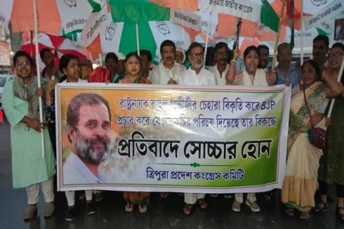 अगरतला में राहुल गांधी की तस्वीर तोड़े जाने के खिलाफ कांग्रेस की ओर से विरोध मार्च निकाला गया