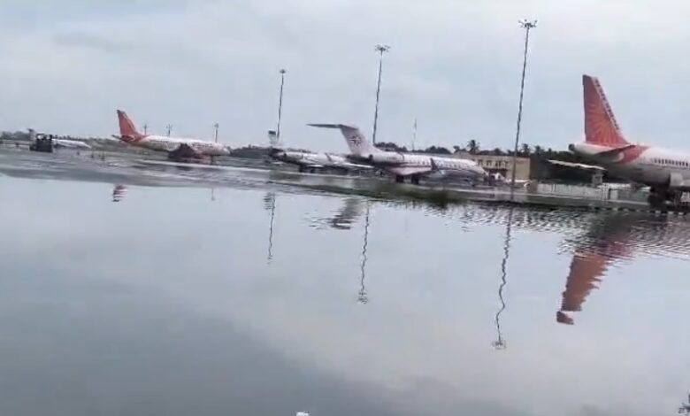 बारिश के पानी में डूबा कोलकाता एयरपोर्ट का रनवे