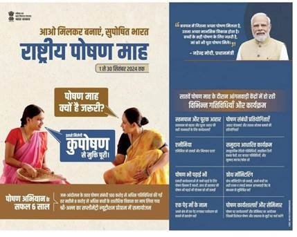 सामुदायिक भागीदारी और सरकारी सहयोग से जुड़े राष्ट्रव्यापी एकीकृत दृष्टिकोण के साथ जारी इस पोषण माह के दौरान ‘सुपोषित किशोरी सशक्त नारी‘ के बारे में चर्चा हो रही है। साथ ही पोषण केंद्रित जन आंदोलनों के जरिये हरेक व्यक्ति को इसमें शामिल करने और संवेदनशील बनाने के लिए दूरदराज इलाकों तक पहुंच बनाई जा रही है।