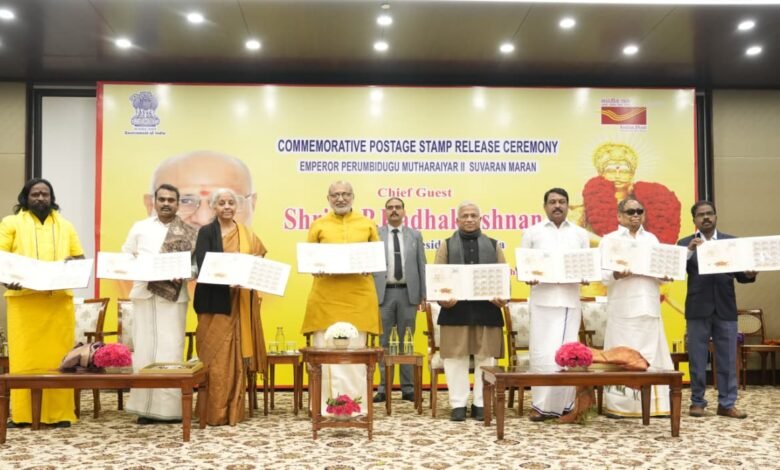 उप राष्ट्रपति श्री सी. पी. राधाकृष्णन ने सम्राट पेरुंबिदुगु मुथरैय्यर के सम्मान में स्मारक डाक टिकट जारी किया