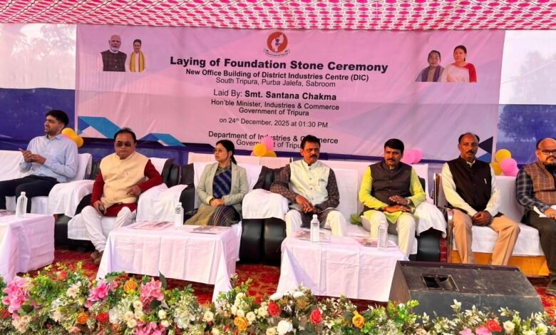 ऑनलाइन डेस्क, 24 दिसंबर, 2025: त्रिपुरा में पिछली सरकार ने इंडस्ट्री को महत्व नहीं दिया। इंडस्ट्री के आधार पर आत्मनिर्भर कैसे बना जाए, इस पर कोई प्लान नहीं था। प्रधानमंत्री नरेंद्र मोदी के सच्चे सपोर्ट से, राज्य सरकार देश के साथ मिलकर त्रिपुरा को आत्मनिर्भर बनाने पर काम कर रही है। आज सबरूम के ईस्ट जलीफा में साउथ त्रिपुरा डिस्ट्रिक्ट इंडस्ट्रियल सेंटर के शिलान्यास समारोह में इंडस्ट्रीज़ और कॉमर्स मिनिस्टर संताना चकमा ने ये बातें कहीं। इंडस्ट्रीज़ मिनिस्टर ने कहा, हमारा एकमात्र लक्ष्य सभी को आत्मनिर्भर बनाना है। मौजूदा ग्रामीण अर्थव्यवस्था के विकास में अलग-अलग महिला सेल्फ-हेल्प ग्रुप्स का अहम रोल है।