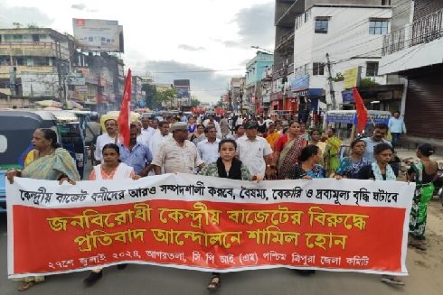 केंद्रीय बजट के खिलाफ सीपीआईएम ने विरोध मार्च निकाला