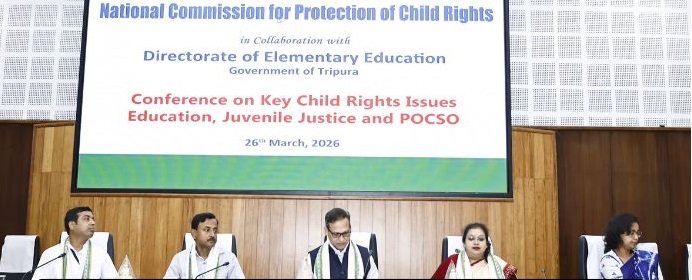 ऑनलाइन डेस्क, 26 मार्च, 2026: आज प्रज्ञा भवन के हॉल नंबर 1 में बच्चों के अधिकारों पर पूरे राज्य में चर्चा हुई। नेशनल कमीशन फॉर प्रोटेक्शन ऑफ चाइल्ड राइट्स और डिपार्टमेंट ऑफ प्राइमरी एजुकेशन ने मिलकर इस चर्चा को ऑर्गनाइज़ किया। इस चर्चा की शुरुआत स्कूल एजुकेशन डिपार्टमेंट के सेक्रेटरी डॉ. मिलिंद रामटेके ने की। चर्चा में त्रिपुरा चाइल्ड राइट्स प्रोटेक्शन कमीशन के मेंबर्स के अलावा, सोशल वेलफेयर और सोशल एजुकेशन, सिक्योरिटी एडमिनिस्ट्रेशन के सीनियर अधिकारी, स्कूल इंस्पेक्टर, डिस्ट्रिक्ट एजुकेशन ऑफिसर, हेड टीचर, असिस्टेंट टीचर, ब्लॉक रिसोर्स पर्सन, क्लस्टर रिसोर्स पर्सन, चाइल्ड वेलफेयर कमिटी के मेंबर और स्कूल मैनेजमेंट कमिटी के मेंबर मौजूद थे।