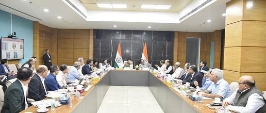 केंद्रीय मंत्री श्री पीयूष गोयल की अध्यक्षता में समीक्षा बैठक में नीति आयोग के सदस्य (विज्ञान और प्रौद्योगिकी), डॉ. वी के सारस्वत, भारत सरकार के प्रधान वैज्ञानिक सलाहकार (पीएसए) प्रो. अजय के.