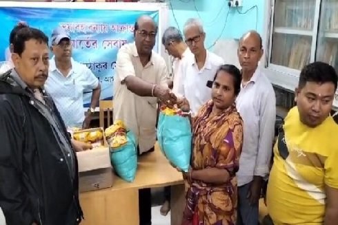 रामठाकुर सेवा मंदिर एवं नवा दिगंता सामाजिक संगठन ने बाढ़ प्रभावित लोगों के बीच राहत सामग्री का वितरण किया