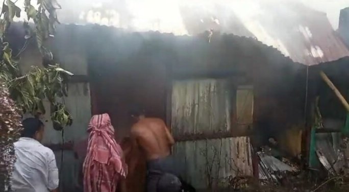 मनसा पूजा के दौरान लगी भीषण आग में दो घर जलकर राख हो गये