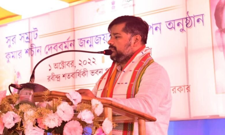 सूचना एवं संस्कृति मंत्री सुशांत चौधरी ने आज रवींद्र शताब्दी भवन हॉल परिसर में आयोजित सुर सम्राट कुमार सचिन देववर्मन की जयंती कार्यक्रम का उद्घाटन करते हुए यह बात कही। कार्यक्रम का उद्घाटन मंत्री श्री चौधरी एवं अन्य अतिथियों ने दीप प्रज्ज्वलित कर किया। सबसे पहले कलाकार सचिन ने देववर्मन की प्रतिमा पर पुष्पवर्षा कर उनका सम्मान किया।
