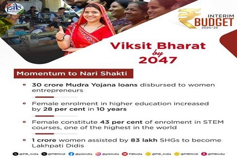ऑनलाइन डेस्क, 1 फरवरी, 2024: वित्त एवं कॉरपोरेट कार्य मंत्री श्रीमती निर्मला सीतारमण ने आज लोकसभा में अंतरिम बजट 2024-25 पेश करते हुए कहा है कि उद्यमशीलता, जीवन में सुगमता और आत्म-सम्मान को बढ़ावा देने को लगातार प्रोत्साहन देकर महिलाओं के सशक्तिकरण को इन दस वर्षों में काफी बढ़ावा मिला है।